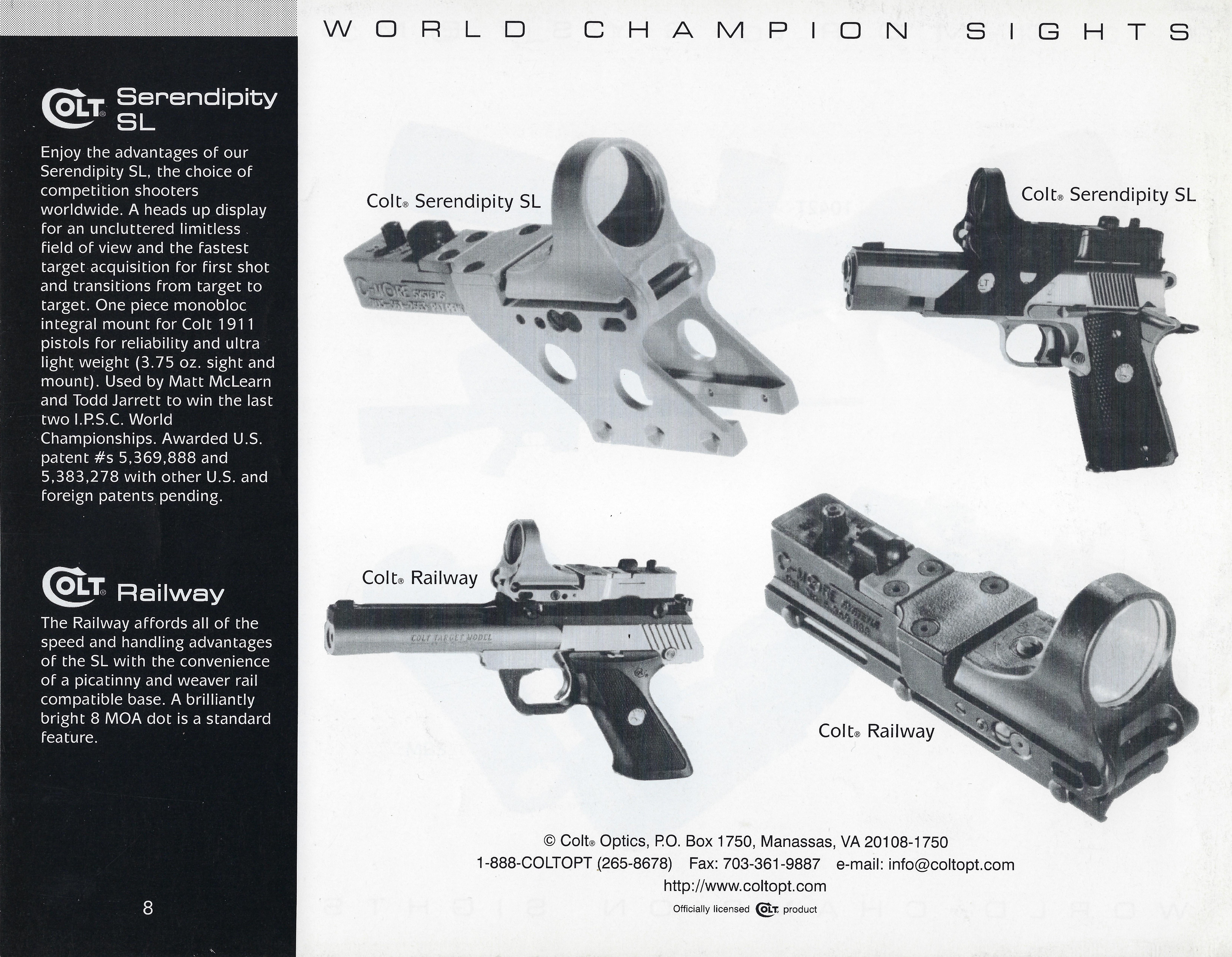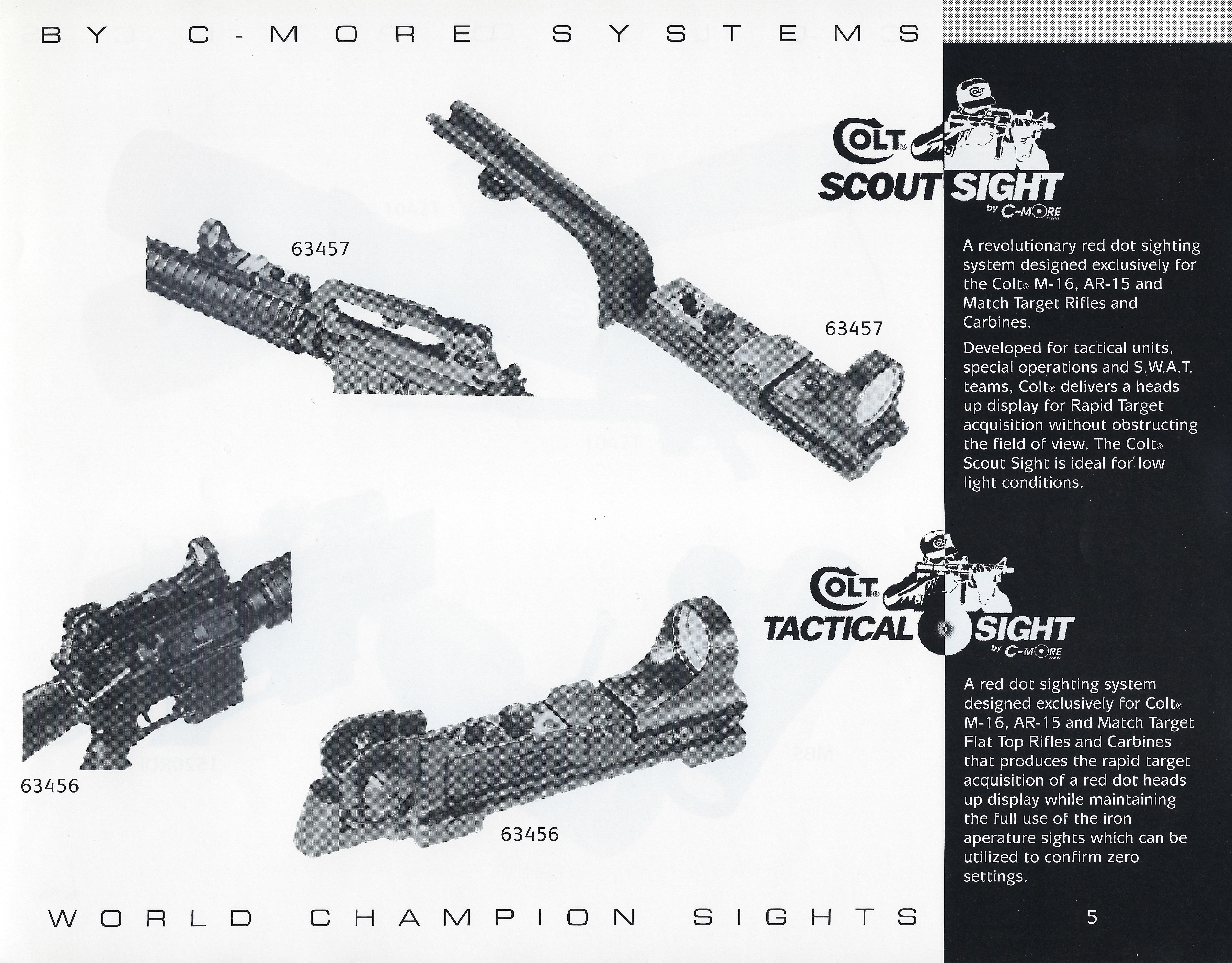 Produced by C-More systems in the 1990s, C-More red dot is still marketed under several different model names (Serendipity, Railway and Slide Ride) the difference being only the mounting system. In the late 90s and early 2000s C-More partnered with Colt to produce Colt marked sights, which included a variant which included an integrated A2 style iron sight.