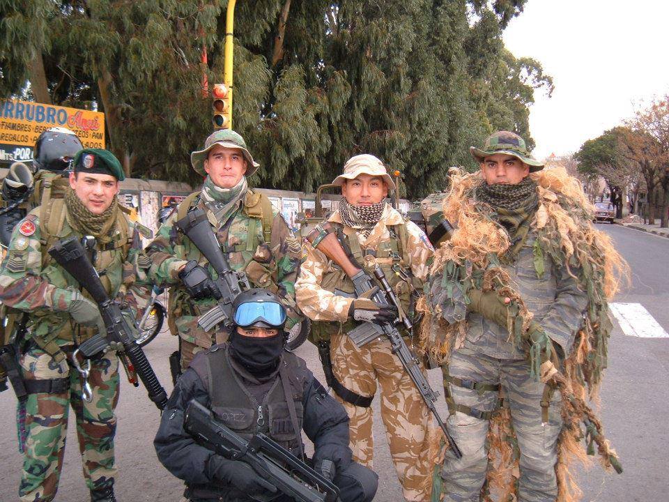 Argentine troops with scoped FALs, first three are marines possible with NEDINSCO 4x scopes, the last photo shows commandos from company 601.
