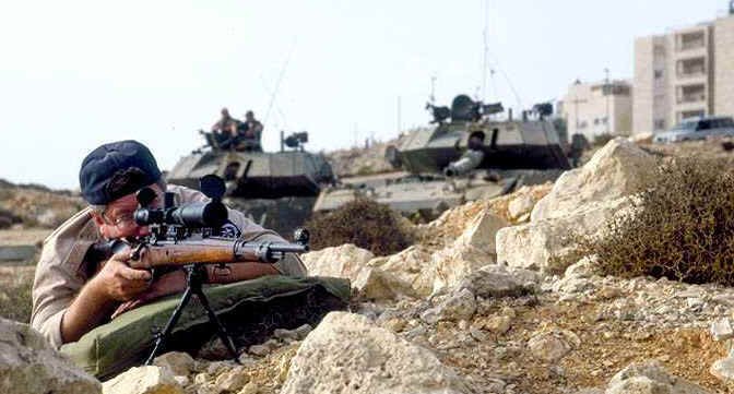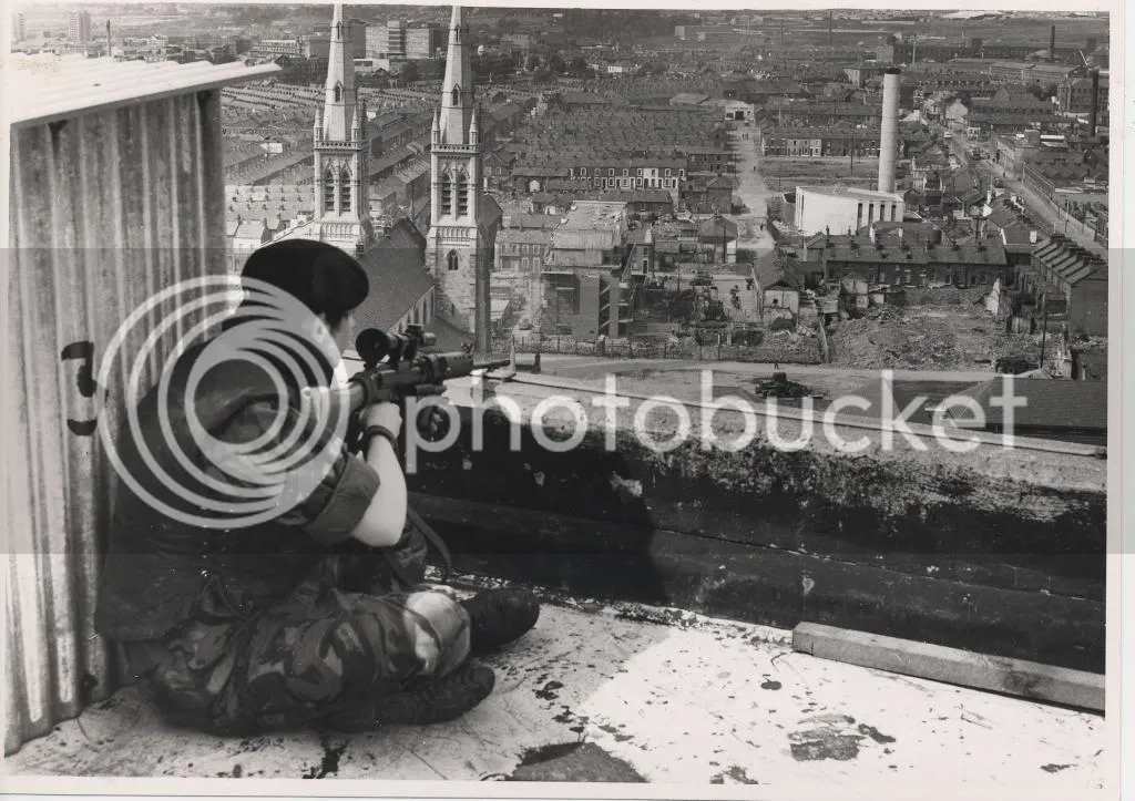 British soldiers with scoped L1A1 rifles in North Ireland.