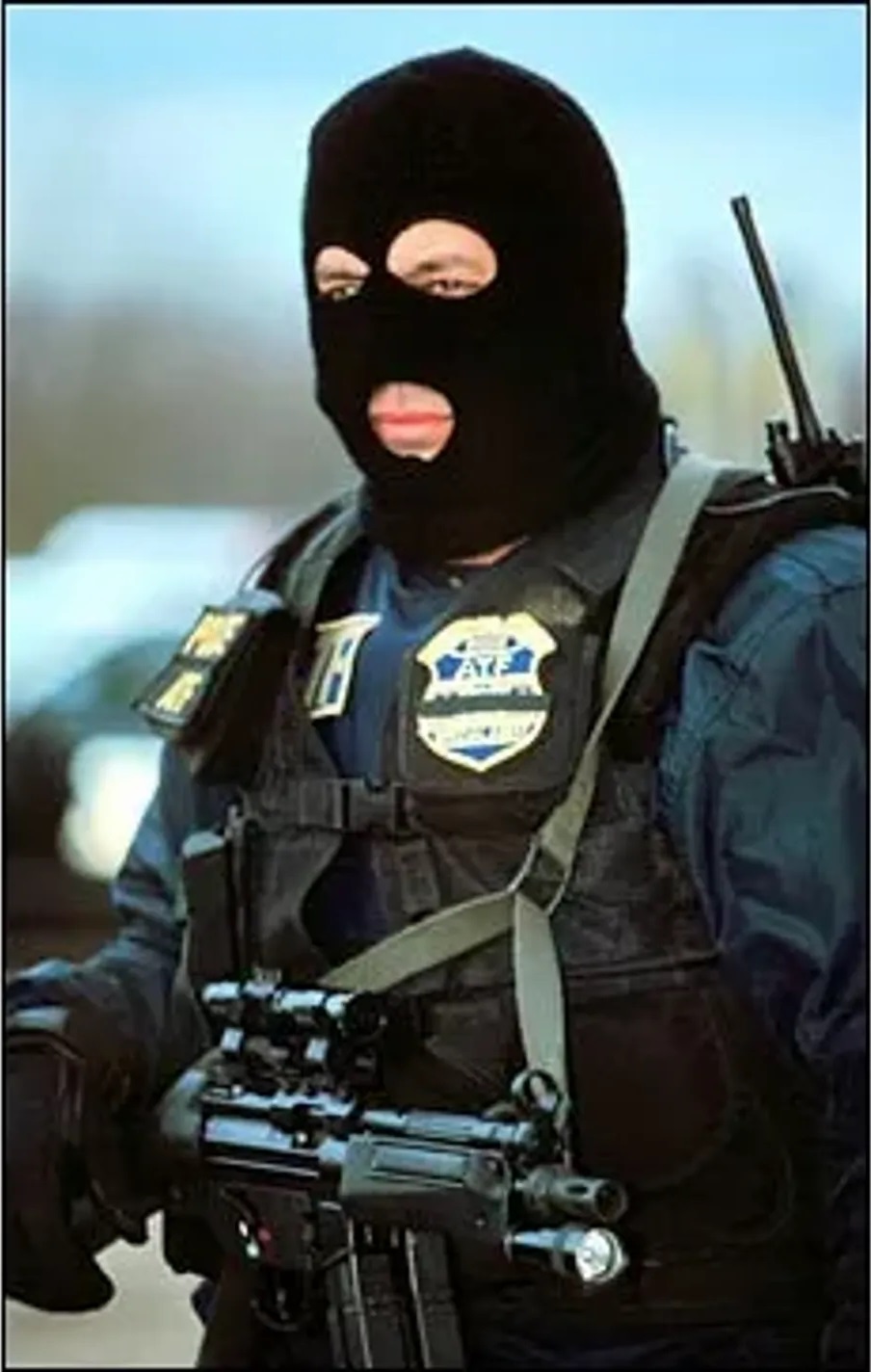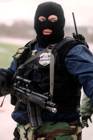 French GIGN with SPAS12, probably early 90s. Probably an early laser sight... Would make more sense when wearing a gasmask.