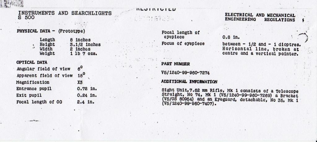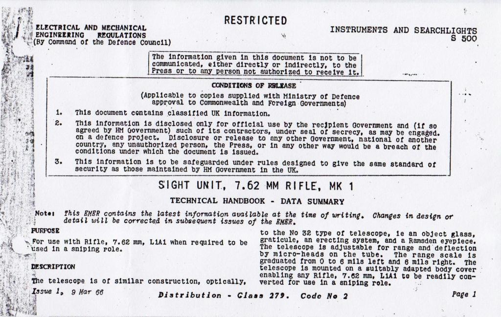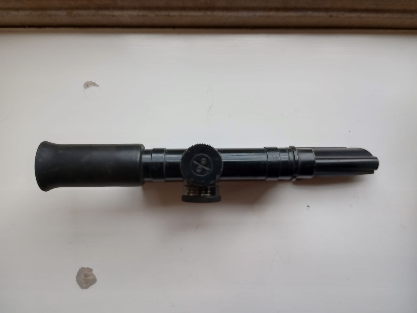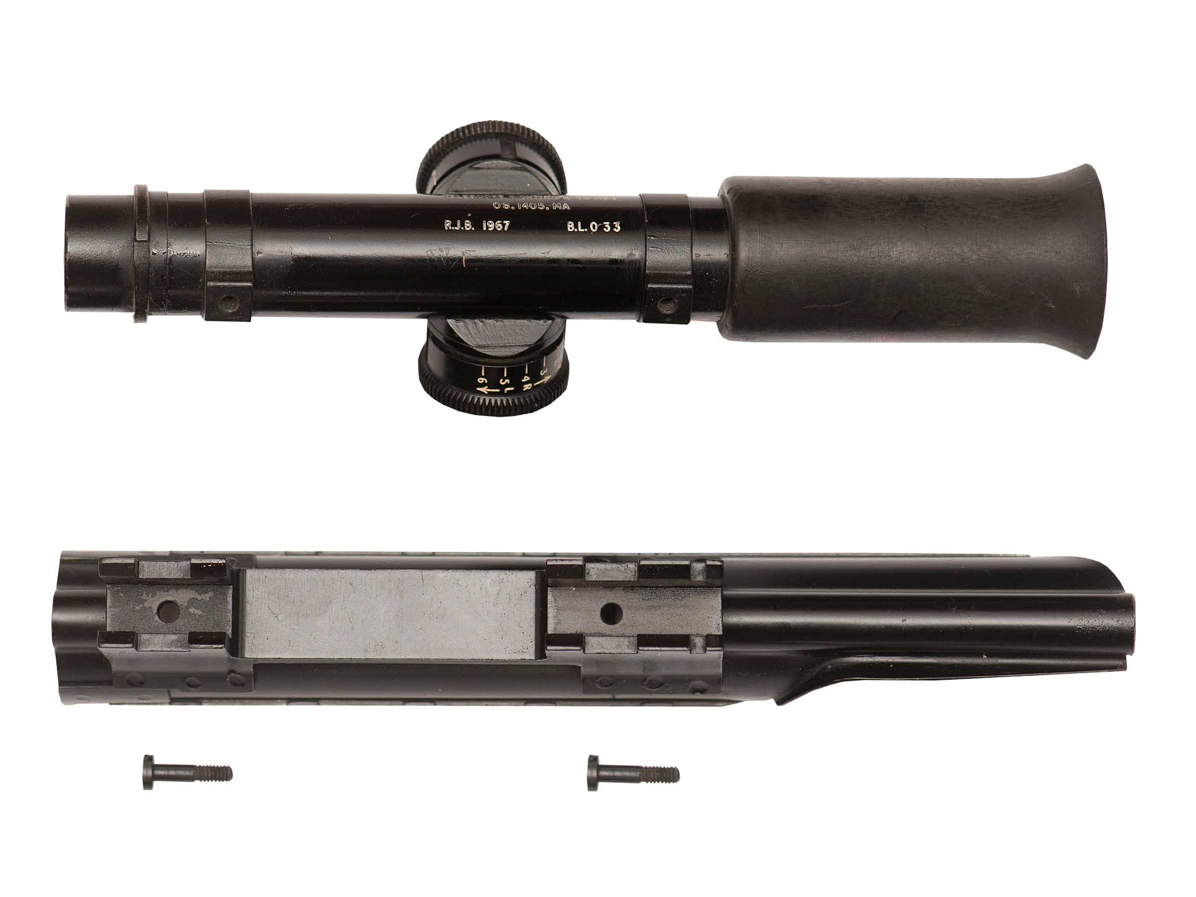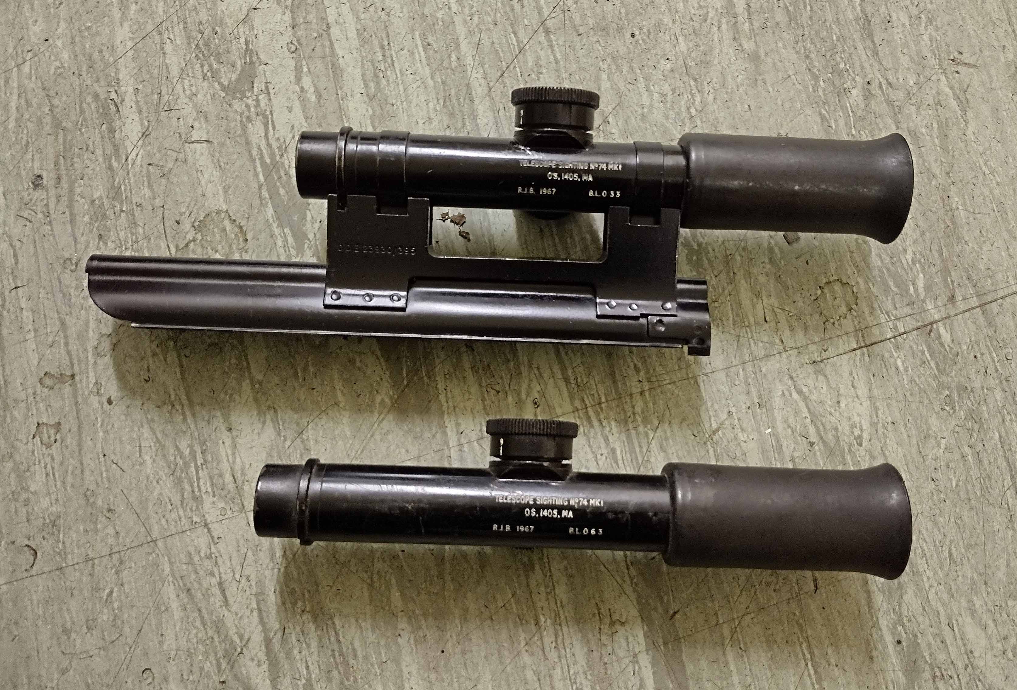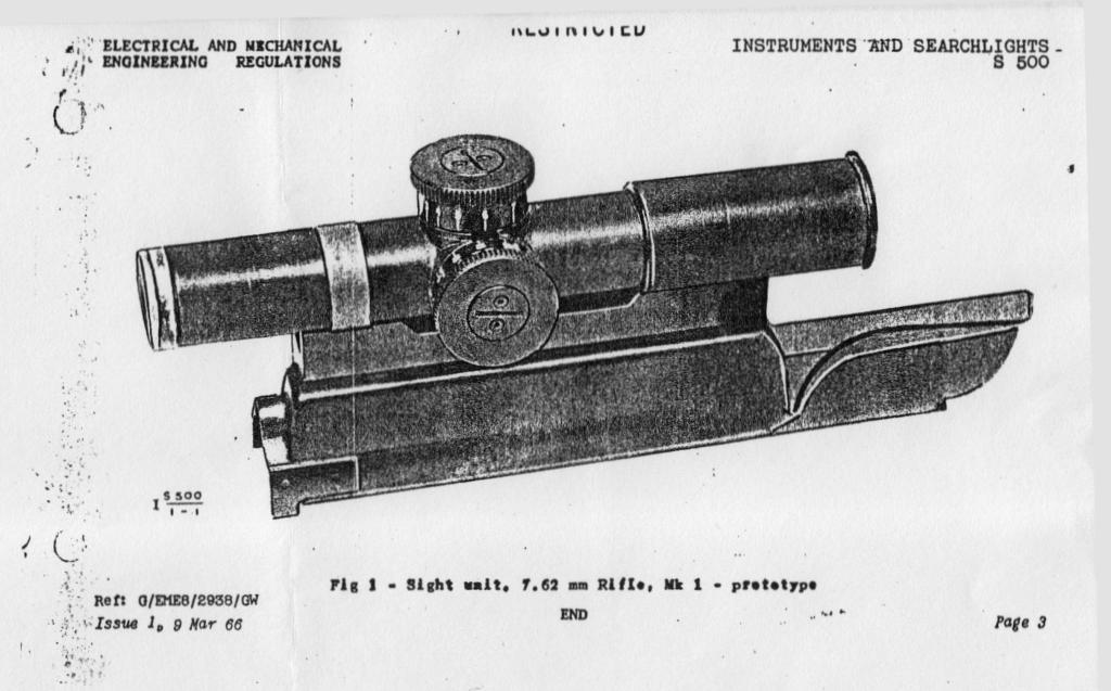 Developed in the 1960s as part of the General Service Requirement for an in-service rifle fitted with a telescopic sight. The scopes were produced by R.J. Beck of London (RJ Beck), with the mount being designed and made by RASF Enfield. The scope appears to be mounted to its dust cover mount by means of rings, but the mounting system is more akin to the STANAG system using two screws to afix the scope to the mount.