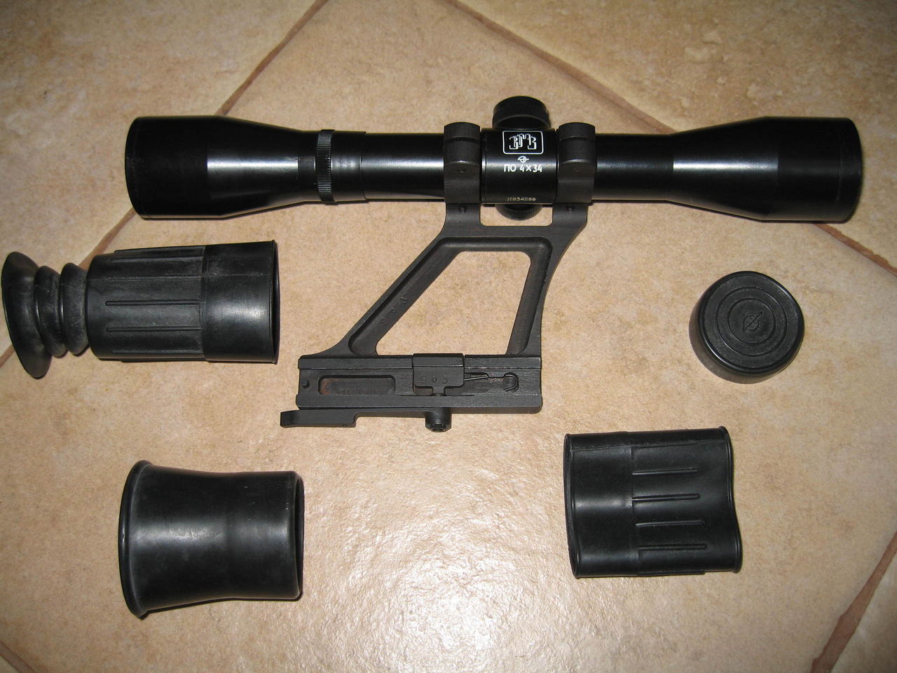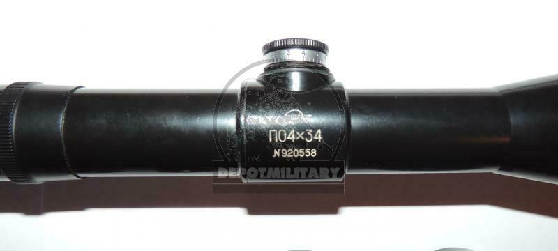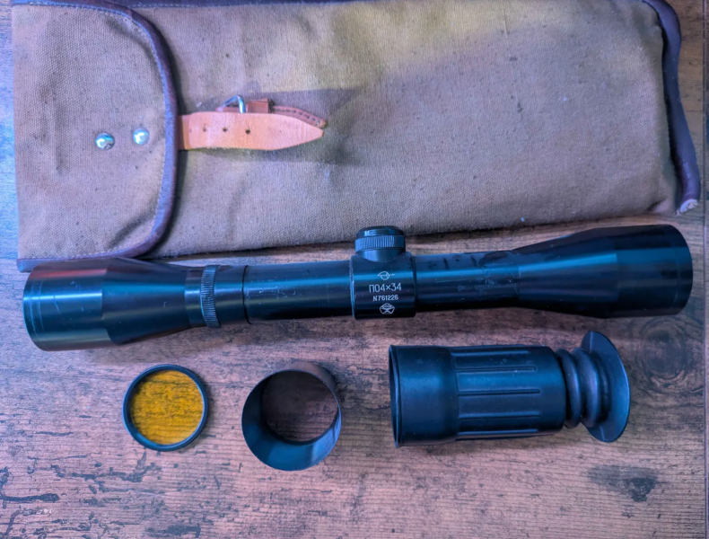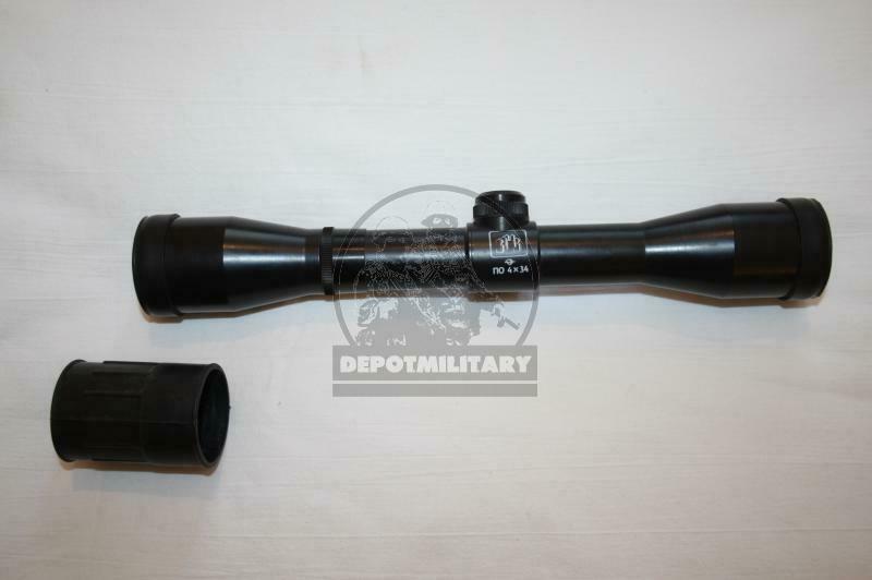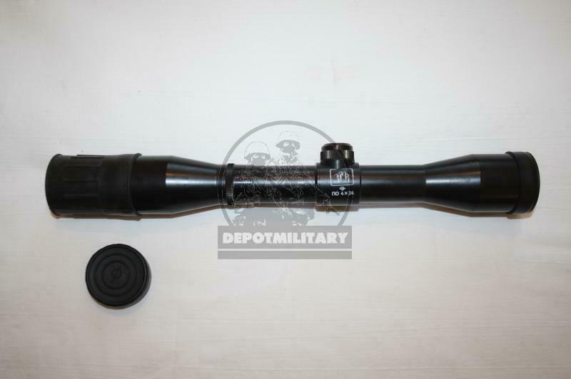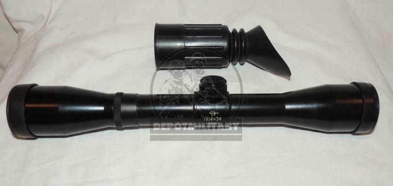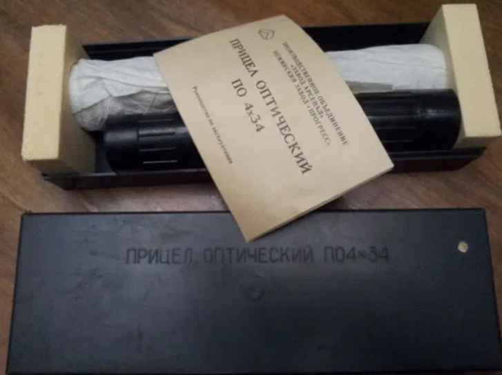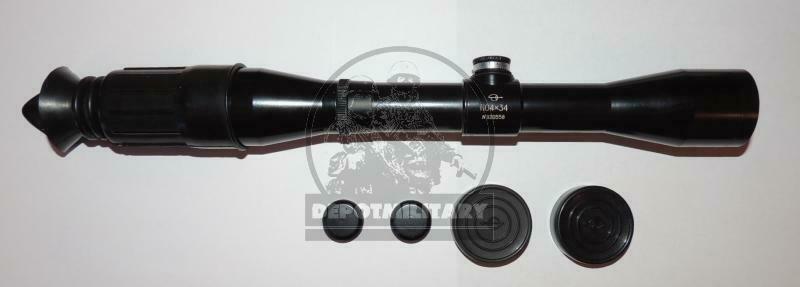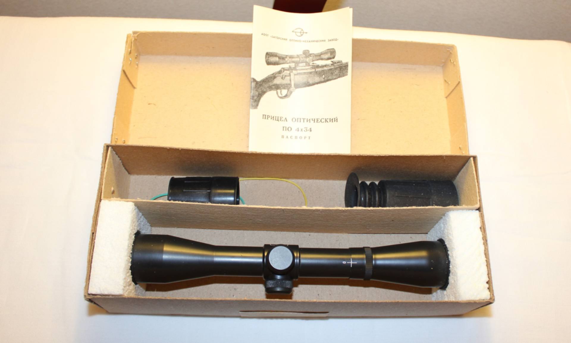 The PO 4x34 is a commerical 4x scope hunting scope produced by the Zagorsk Optical-Mechanical Plant (ZOMZ). A simple and functional scope it gained recognition in later years as the scope mounted on the Groza 9x39 bullpup. Production of the scope appears to have been spread out over nearly 25 years based on known serial numbers. Examples produced by the Arsenal Factory in Kiev Ukraine are also known to exist.