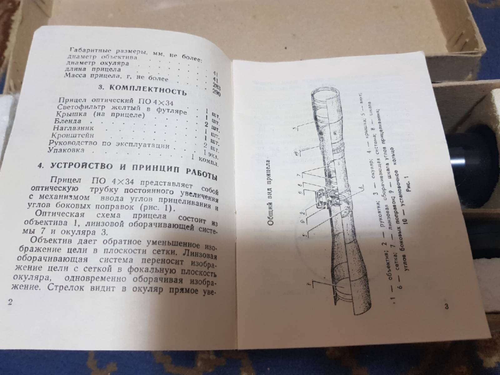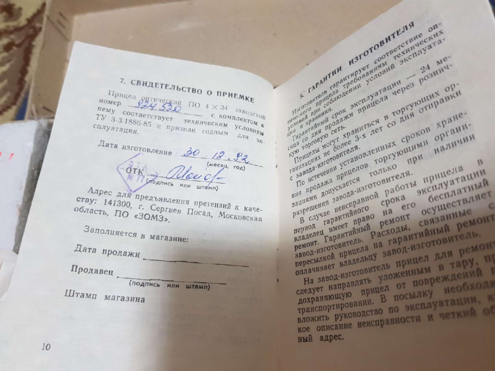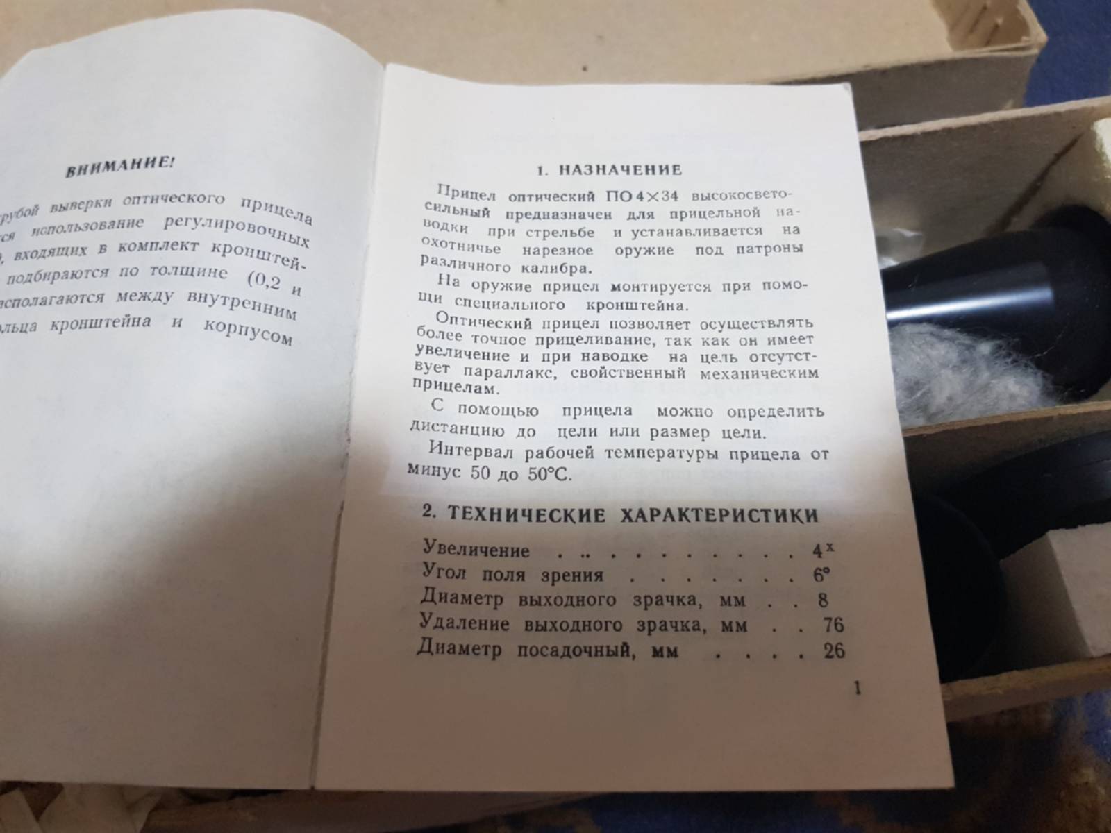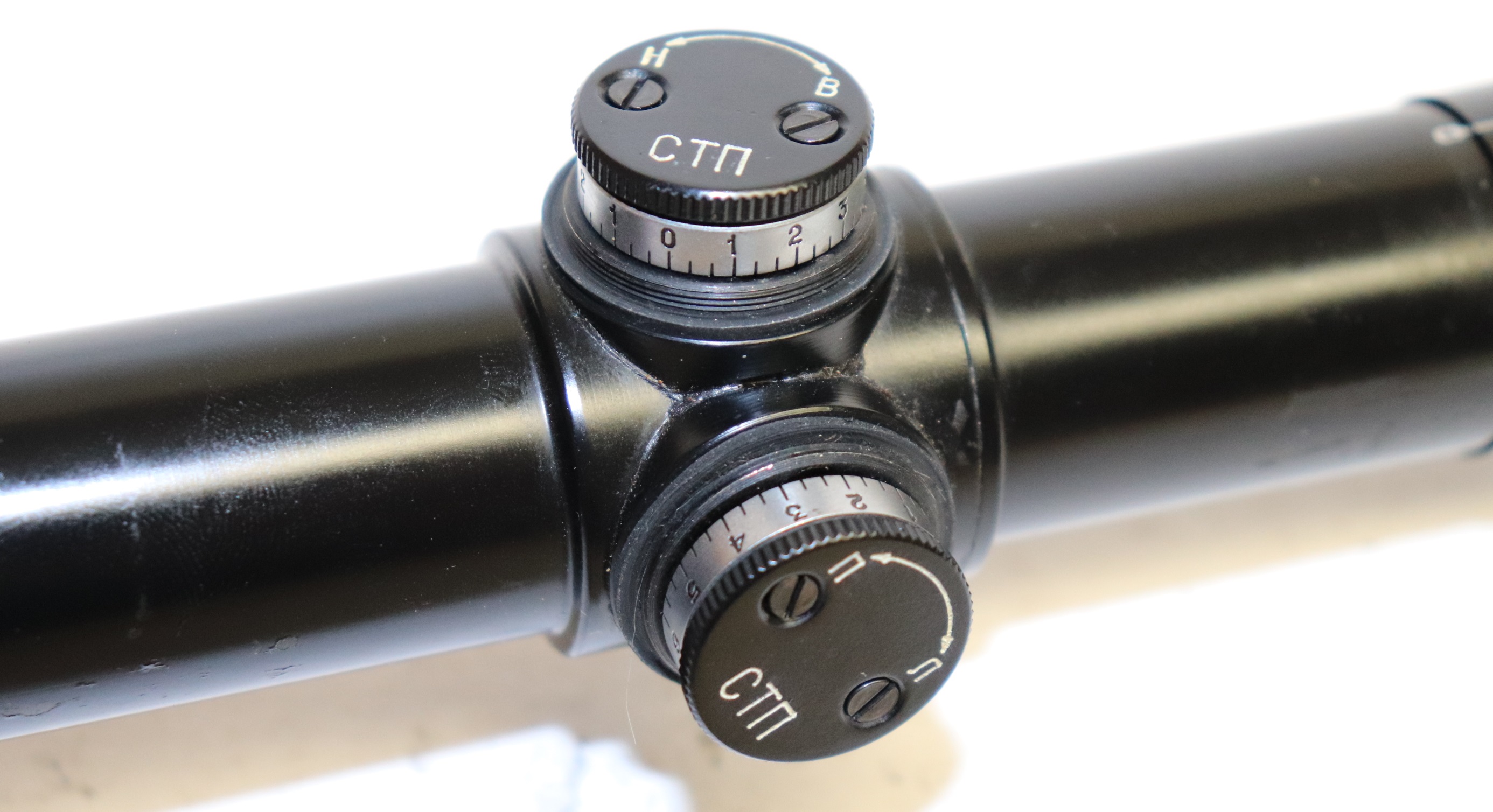 The PO 4x34 is a commerical 4x scope hunting scope produced by the Zagorsk Optical-Mechanical Plant (ZOMZ). A simple and functional scope it gained recognition in later years as the scope mounted on the Groza 9x39 bullpup. Production of the scope appears to have been spread out over nearly 25 years based on known serial numbers. Examples produced by the Arsenal Factory in Kiev Ukraine are also known to exist.