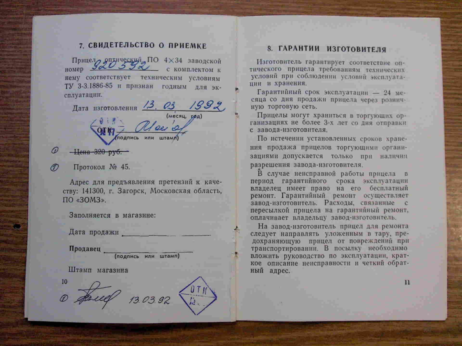 | 770008 | ZOMZ | 2 3 4 | Export scoped marked 'Made in USSR'. |