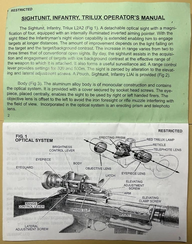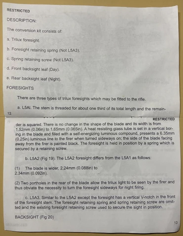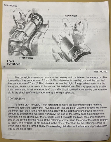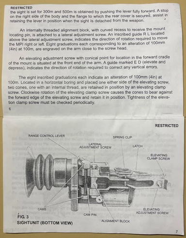 Israeli sights are marked 250 and 450 Meters while British sights are supposedly marked 300 and 500 Yards. Pending more.