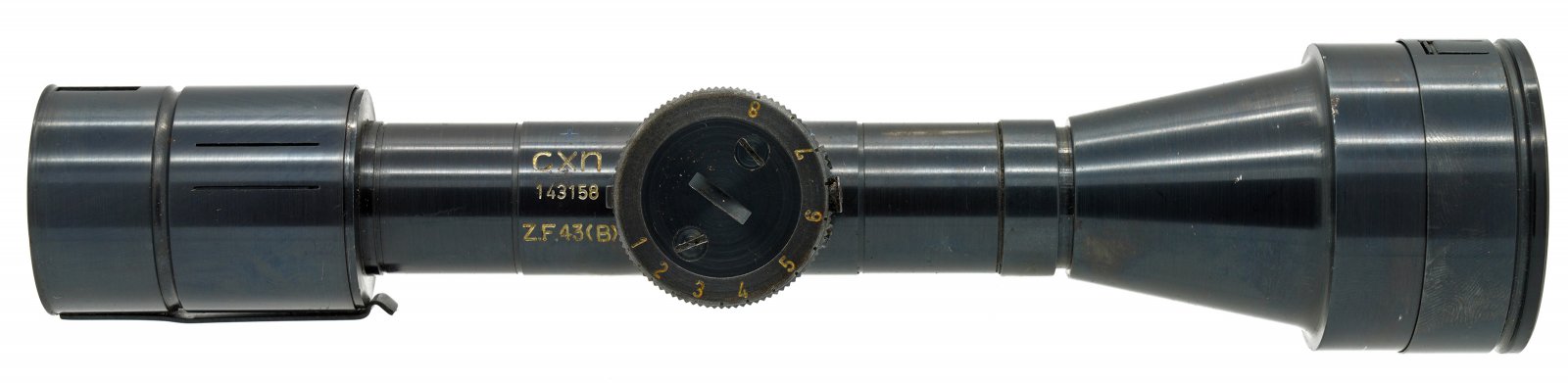 Not much information is available regarding the ZF43(b). Built by Emil Busch AG (cxn) in Rathenow during WWII, it is unclear how many of the scopes were produced and if they were ever issued.
