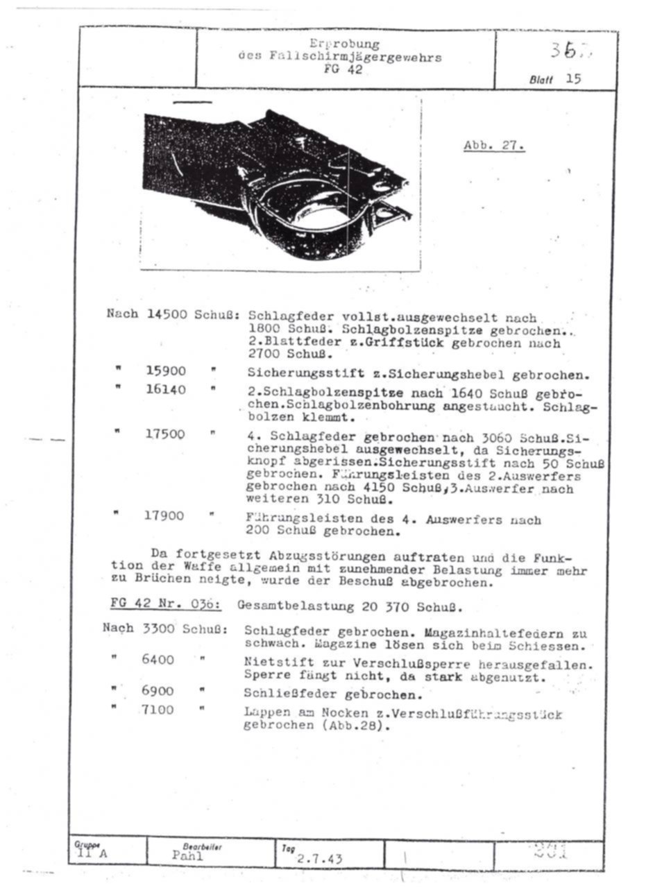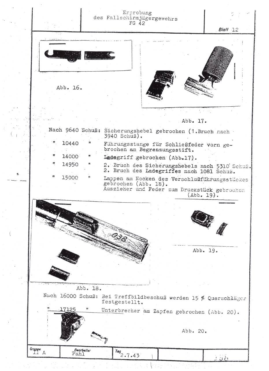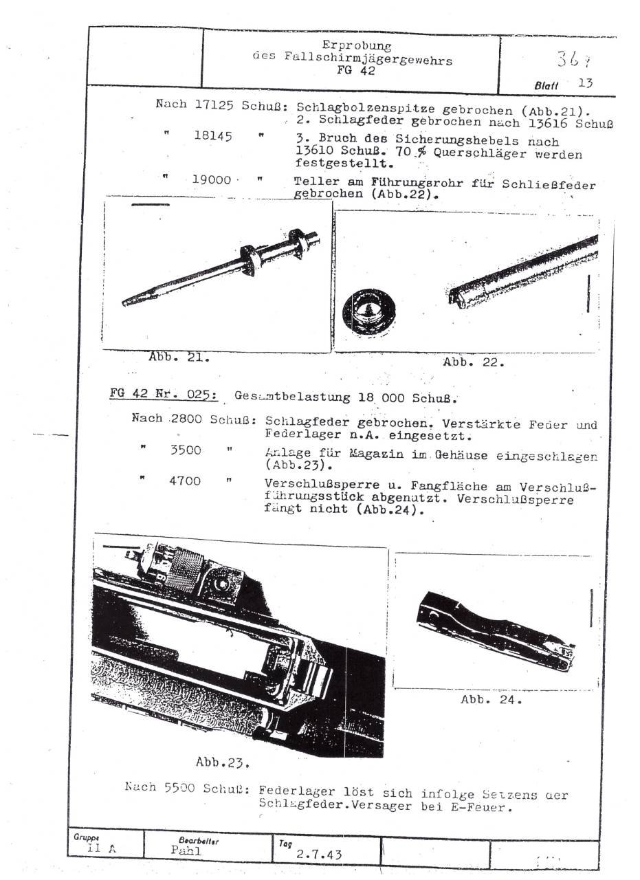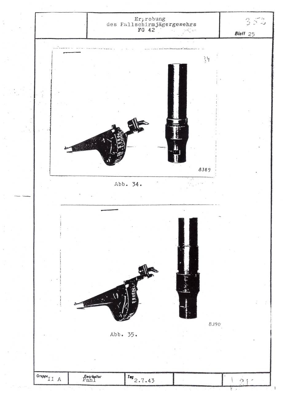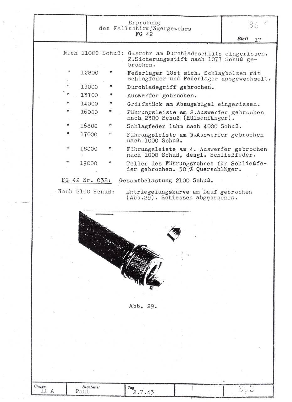 German FG42 testing report dated July 2, 1943. Includes results on both the ZFG42 and Voigtländer's prismatic FG42 sight.