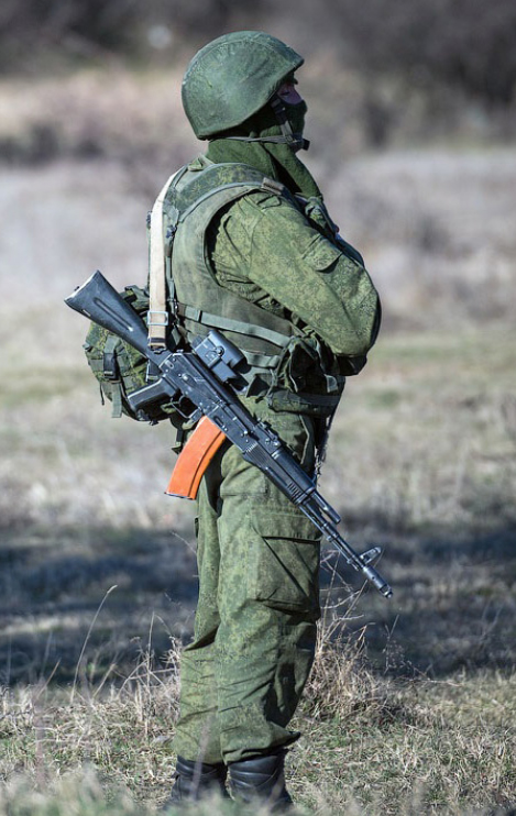 Seen with Russian forces during the 2014 annexation of Crimea.