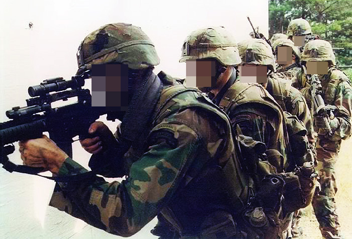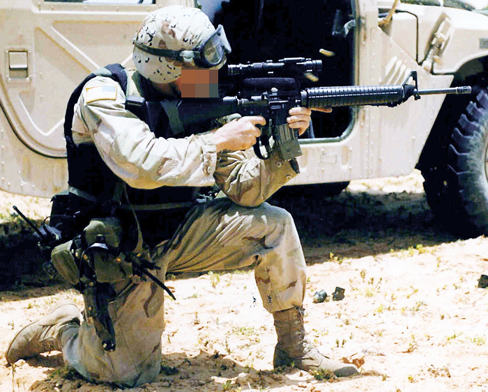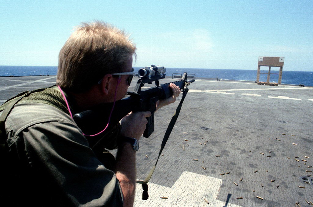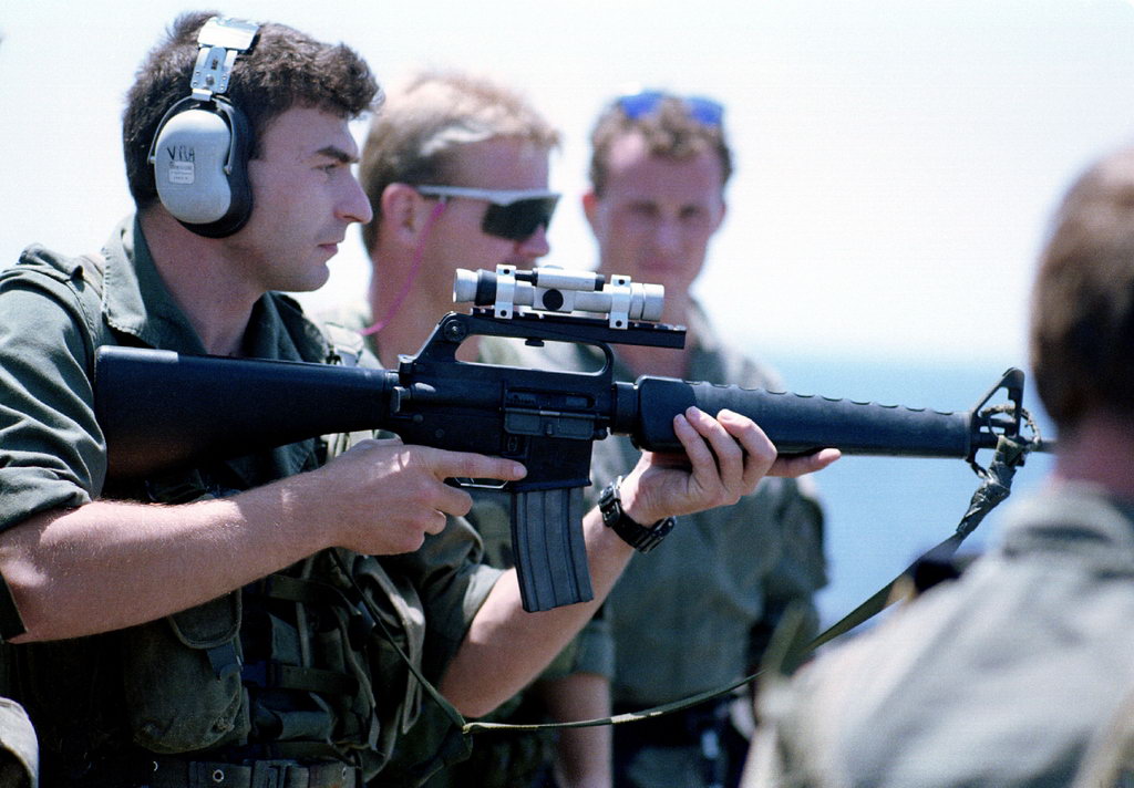 Navy SEALs with a M16A1 equipped with a Silver Aimpoint 3000 with magnifier. Photos date from 1991(?)
