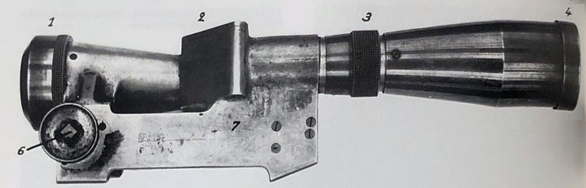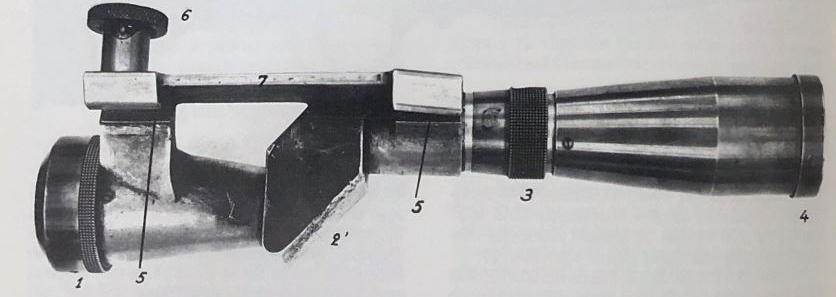 The APX M686 was a French interwar scope designed by APX (Ateliers de Puteaux) that did not progress beyond the testing phase. While it made use of a mounting system similar to that of the earlier APX 1921 scope, it was a new prismatic design that allowed for the objective lens to be mounted over the rifle's bore while the eye piece was offset to the left preventing the top of the action from being blocked by the scope body.