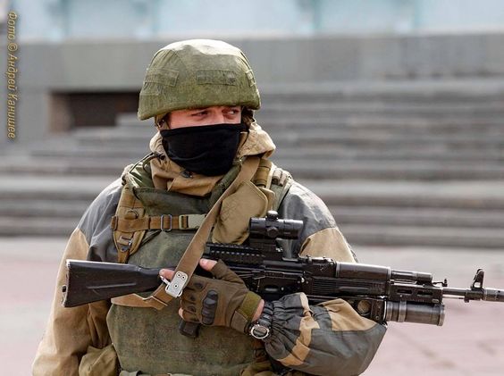 Pro Russian soldier in Ukraine 2014, probably a commerical scope.
