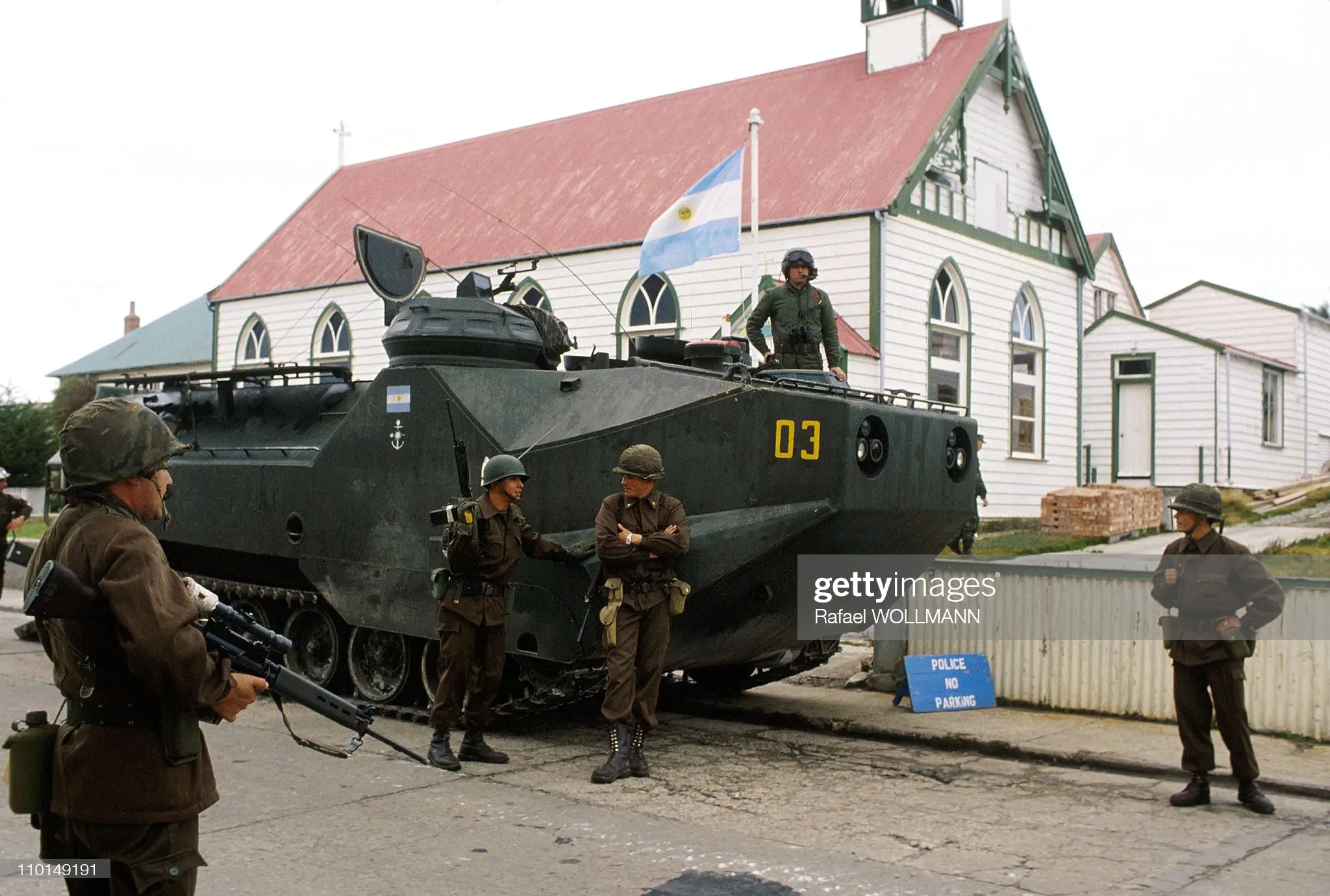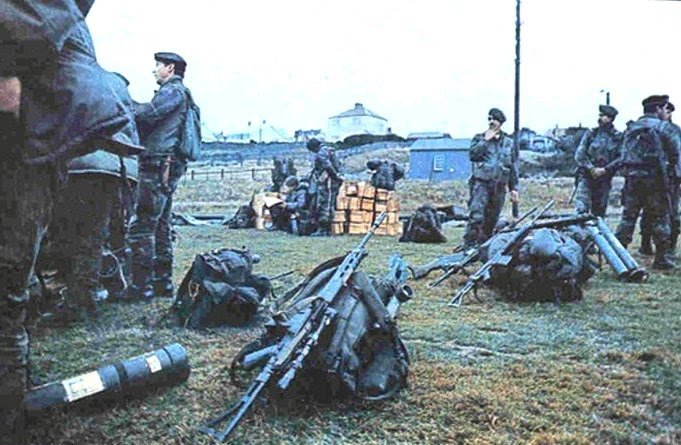 Argentine troops with scoped FALs, first three are marines possible with NEDINSCO 4x scopes, the last photo shows commandos from company 601.