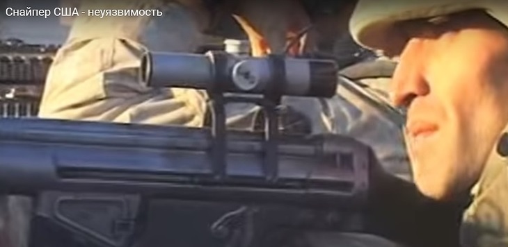 Scope is a PU variant with an unknown mount. Russian is Снайпер США неуязвимость or US sniper invulnerability. If anybody can find the original video and information on the mount, let me know.