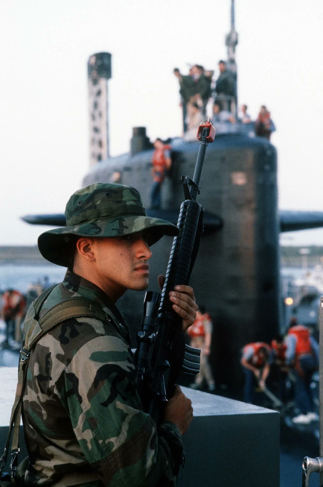 Spanish Marines with a CETME C. Scope unknown. Oddly looks to have bands helping keep it in place.