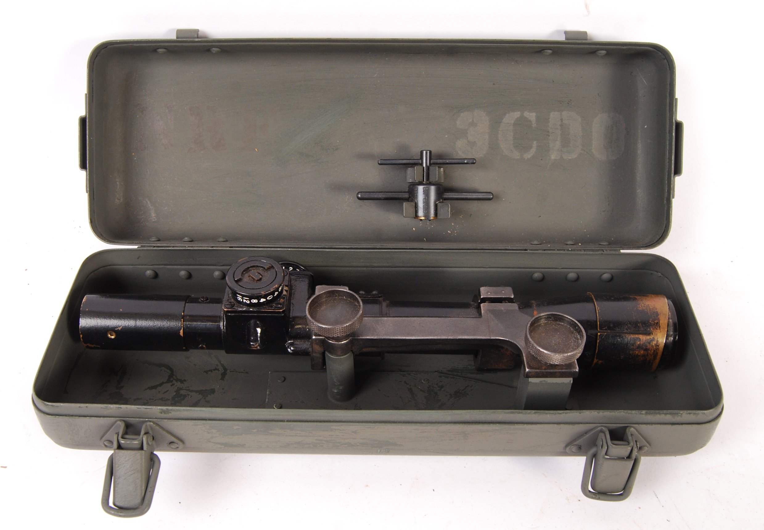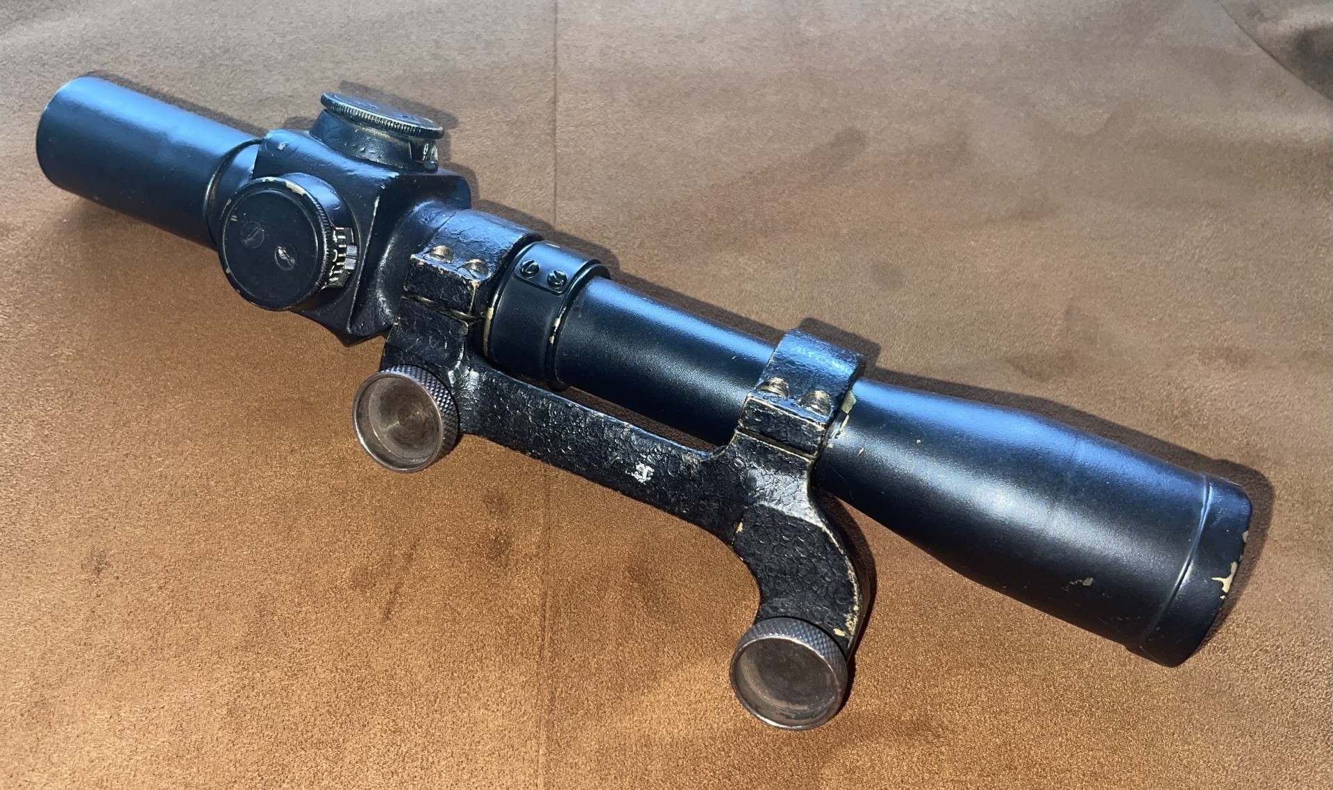 Designed for use on the Bren light machine gun under the design specification CIA(FC) EXP 1082 few if any of the scopes would be issued in this role on the Bren. Having been designed for use on a machine gun the scope and its mount were both rugged and durable in design and construction. A peculiarity of the design was the mounting of the windage knob on the left side of the scope, a concession required by the Bren's vertical magazine which blocked access to a right side of the scope.