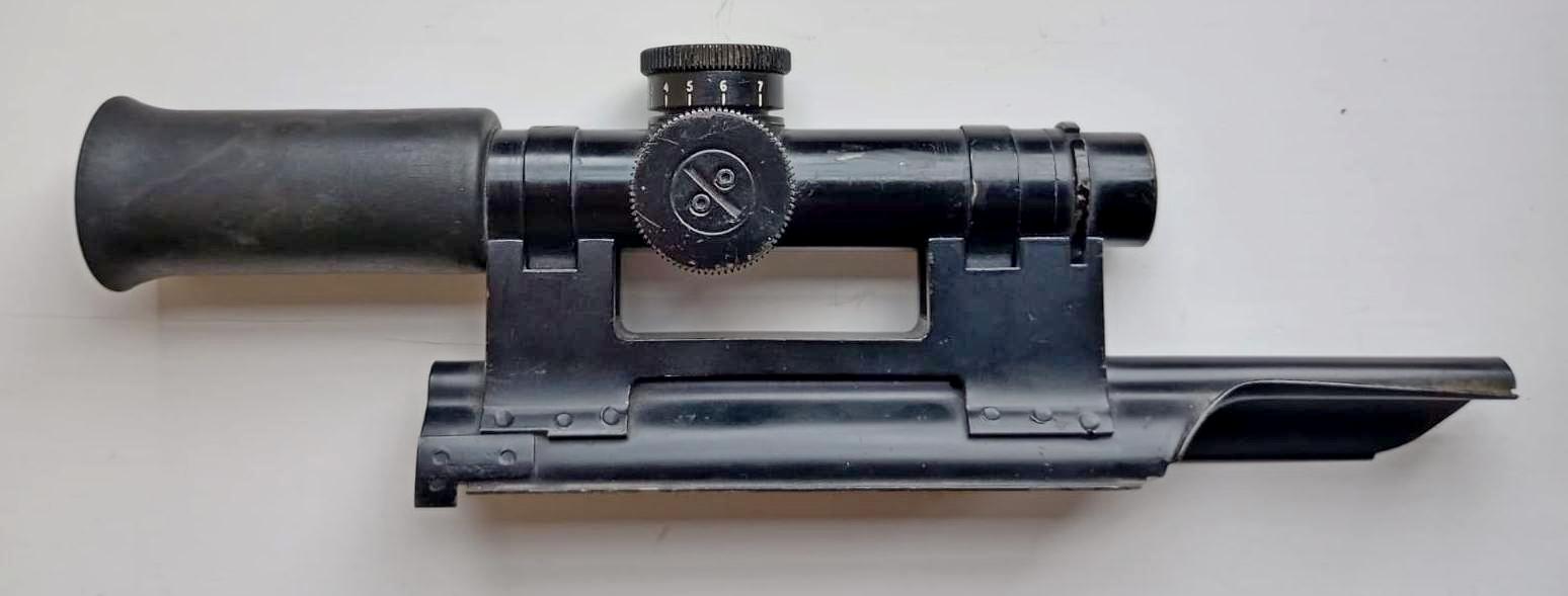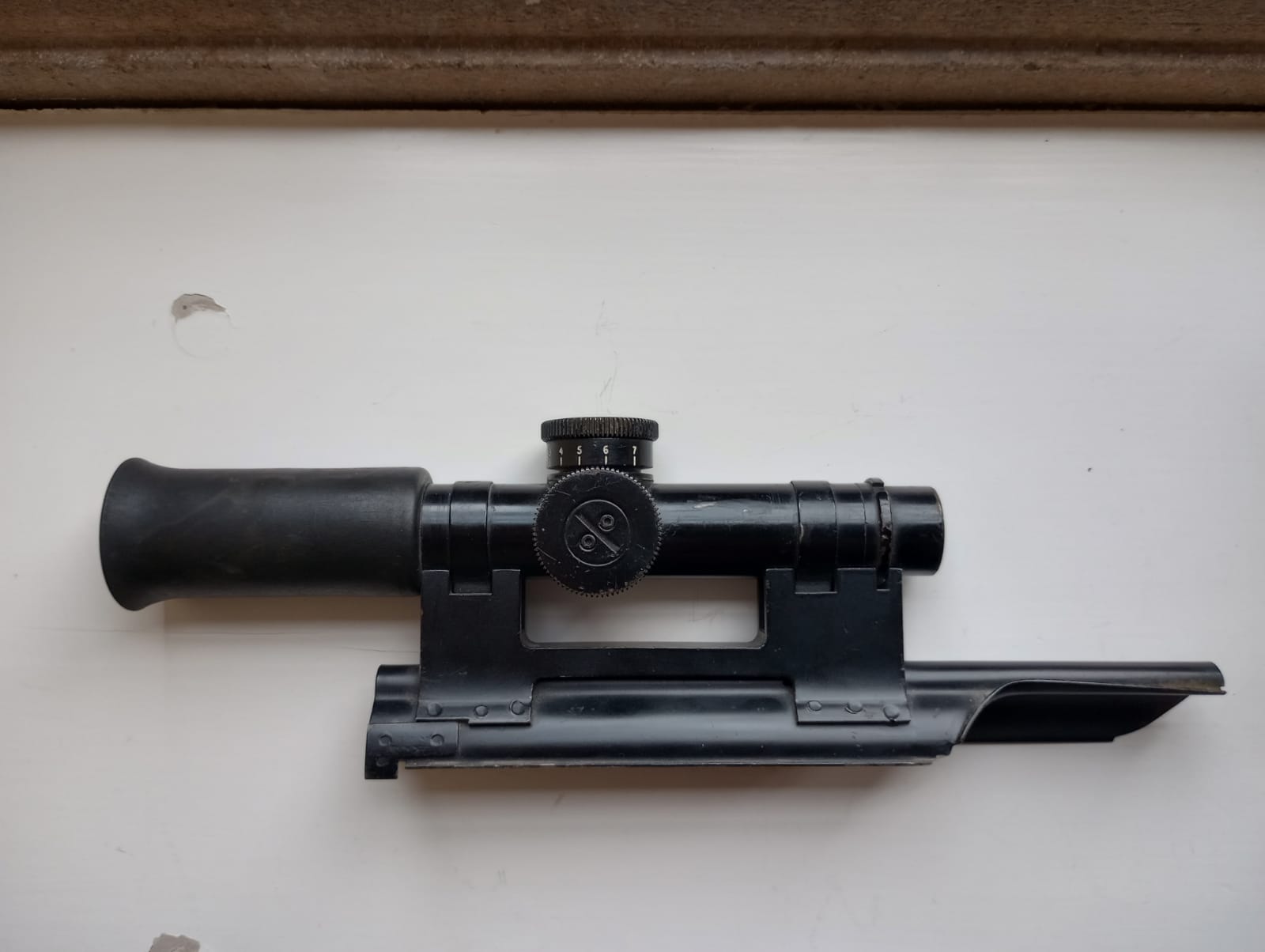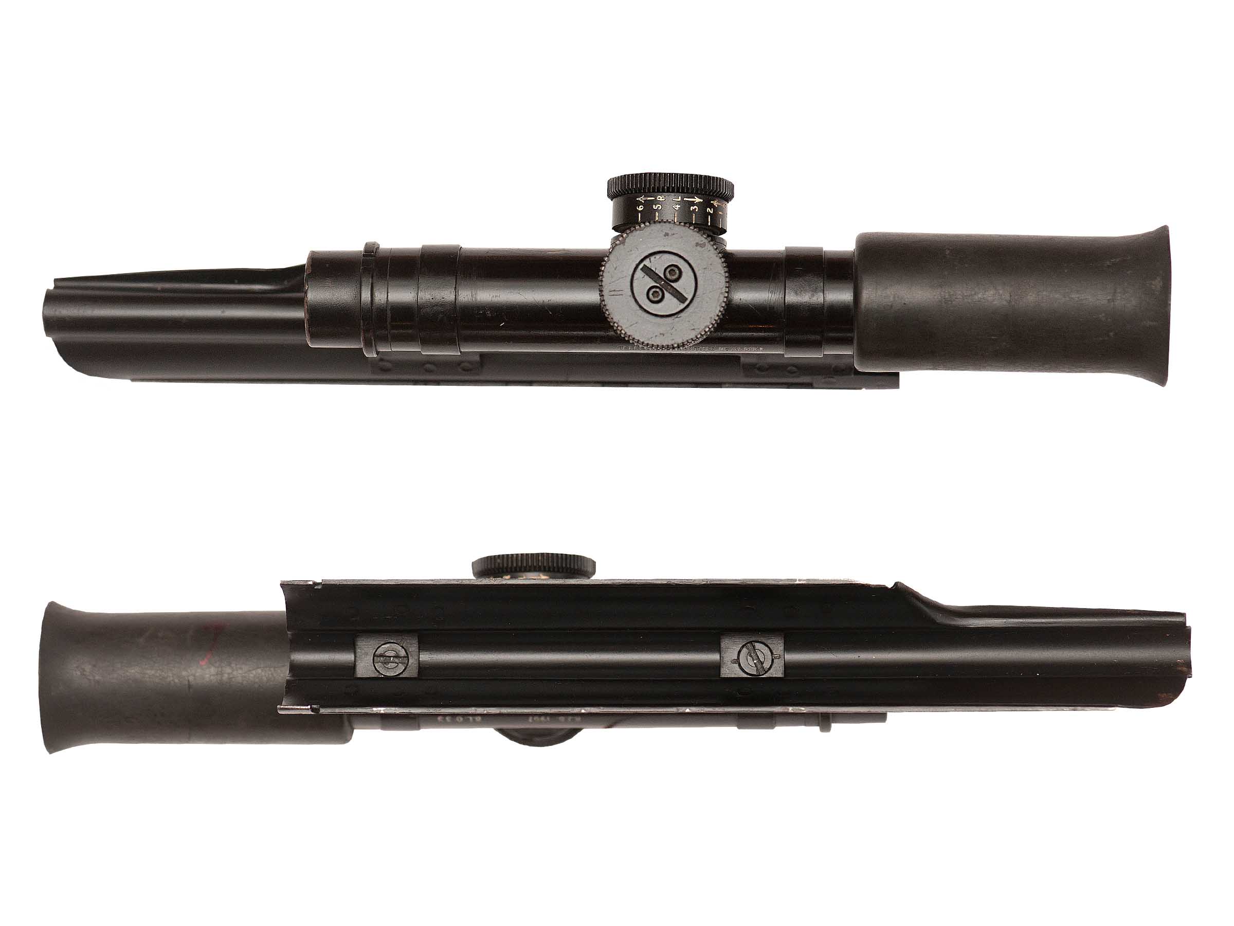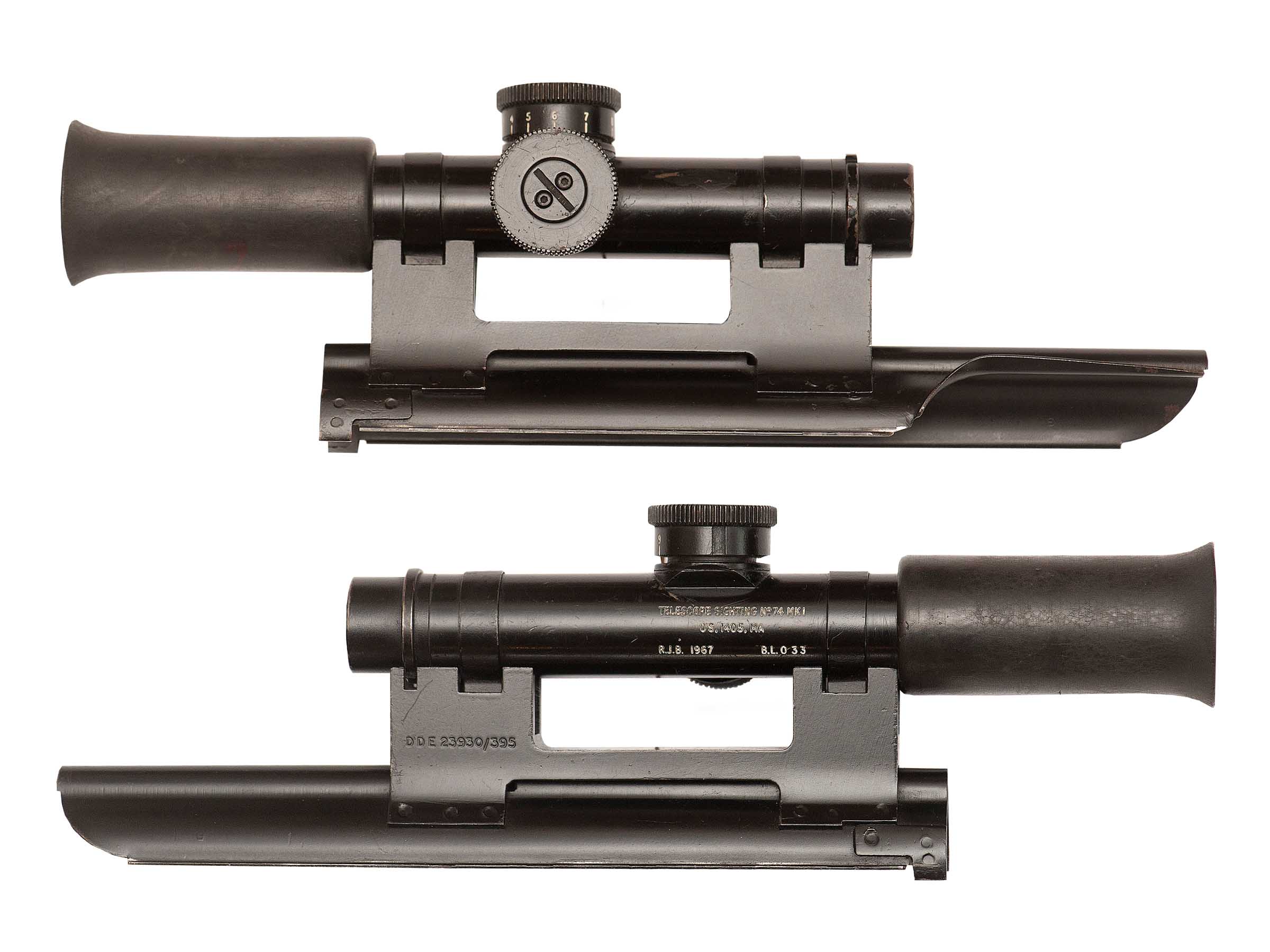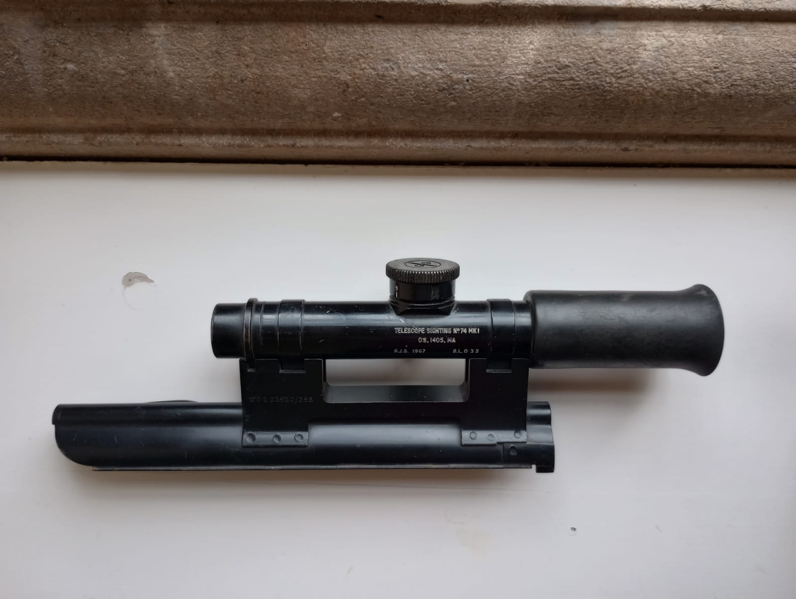 Developed in the 1960s as part of the General Service Requirement for an in-service rifle fitted with a telescopic sight. The scopes were produced by R.J. Beck of London (RJ Beck), with the mount being designed and made by RASF Enfield. The scope appears to be mounted to its dust cover mount by means of rings, but the mounting system is more akin to the STANAG system using two screws to afix the scope to the mount.
