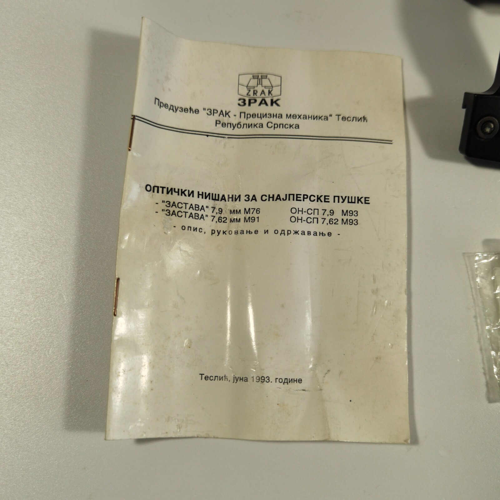 It is also sometimes confusingly called and marked as the ON M91. Zrak literature lists the scope as being produced in both 7.92x57 (8mm Mauser) and 7.62x54r versions.