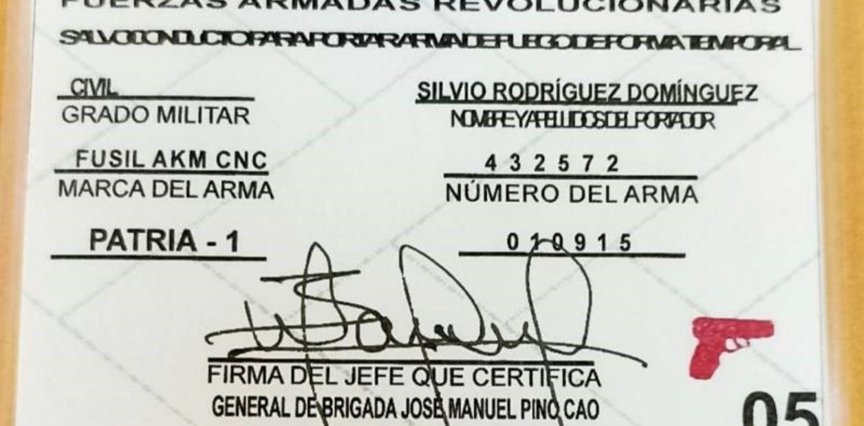 Carry license of Cuban singer Silvio Rodríguez. The license lists the scope as PATRIA-1.