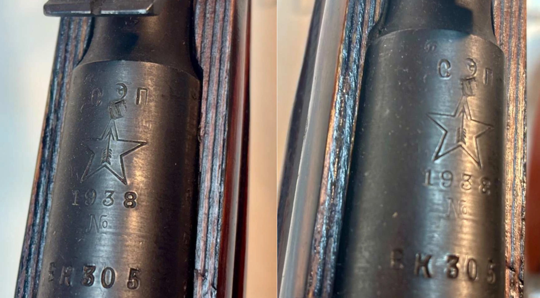 | Б4332 | 1938 | 2 3 4 5 6 7 8 9 10 11 12 13 14 15 | Seen on rifle BK305. Scope mount number is 00310. |