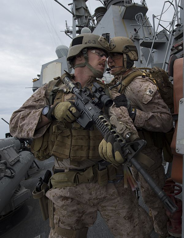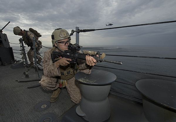 With US Marines on M4 carbine.