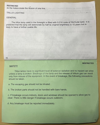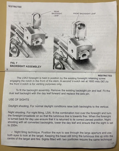 Israeli sights are marked 250 and 450 Meters while British sights are supposedly marked 300 and 500 Yards. Pending more.