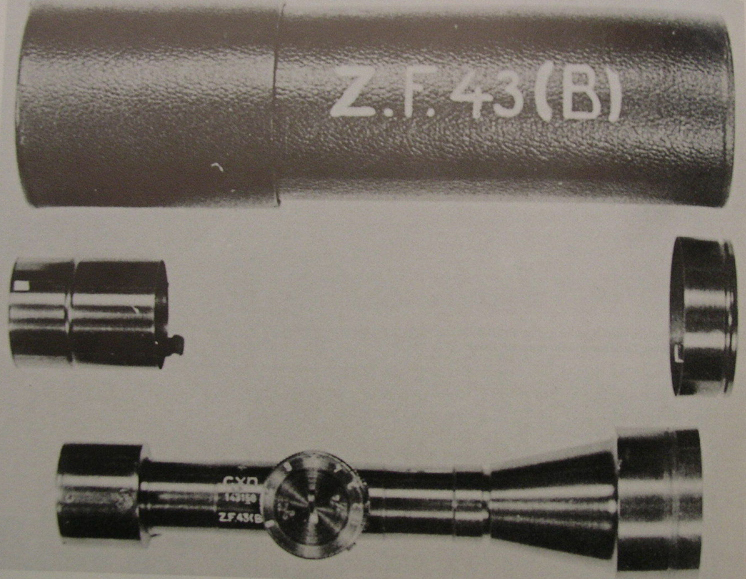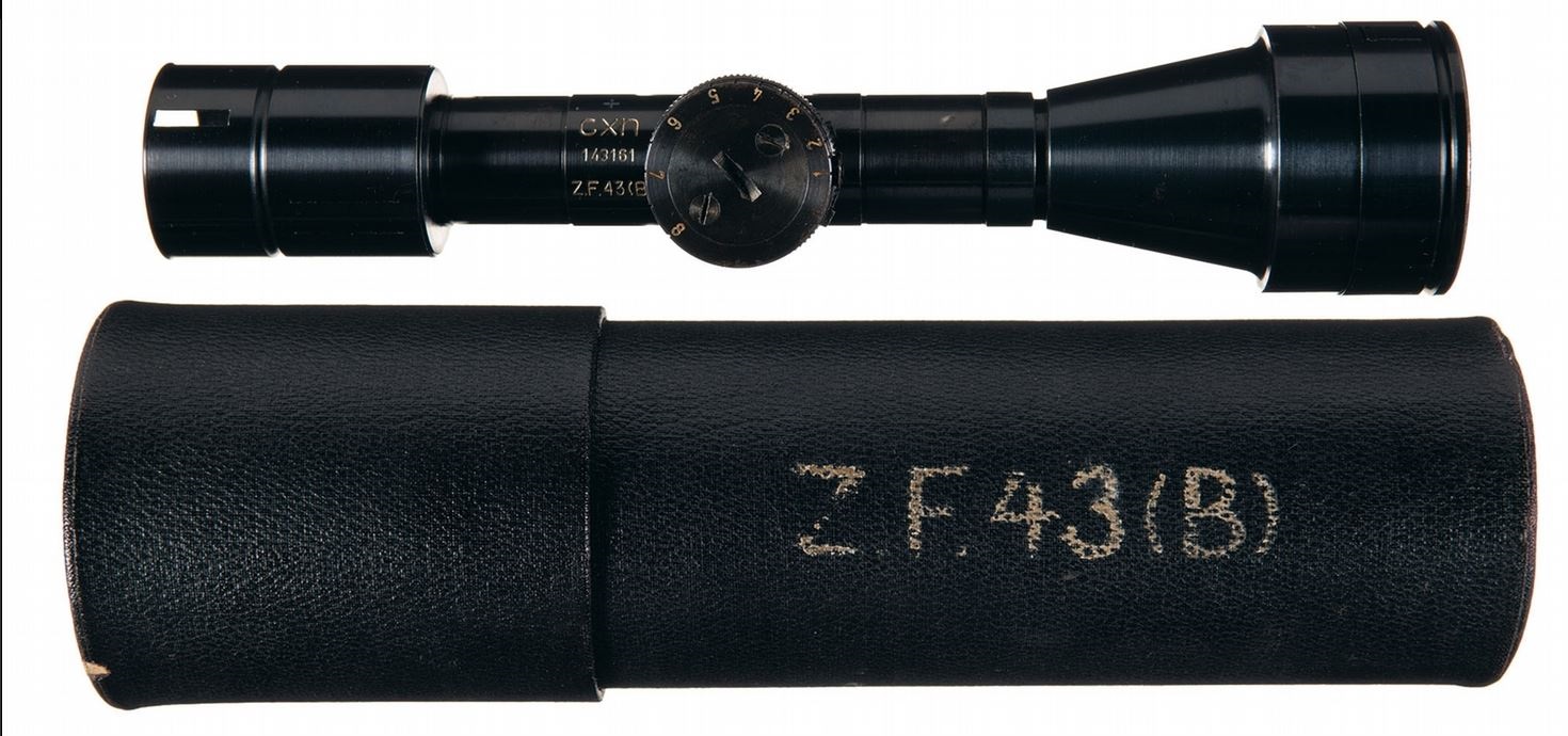 Not much information is available regarding the ZF43(b). Built by Emil Busch AG (cxn) in Rathenow during WWII, it is unclear how many of the scopes were produced and if they were ever issued.
