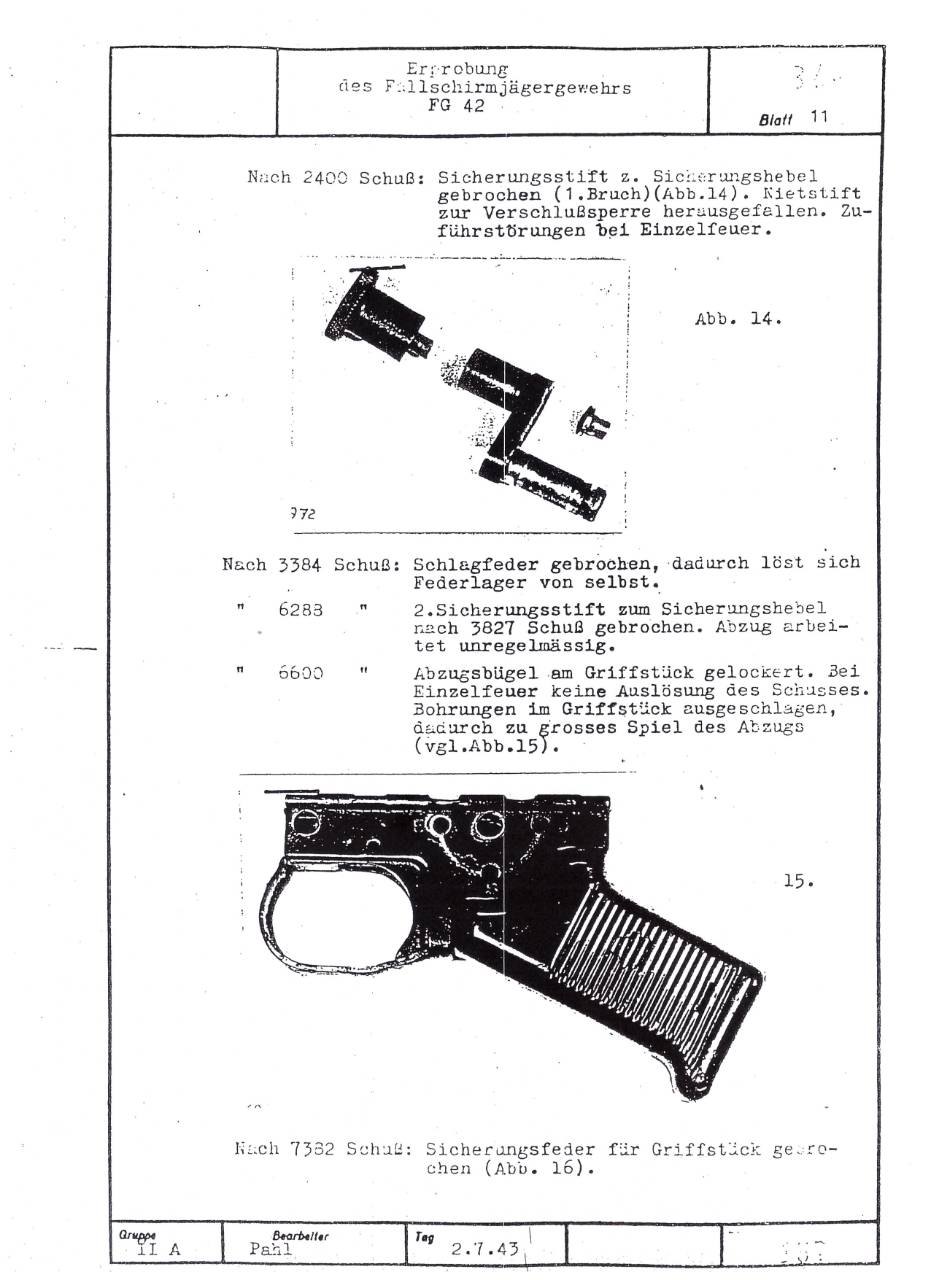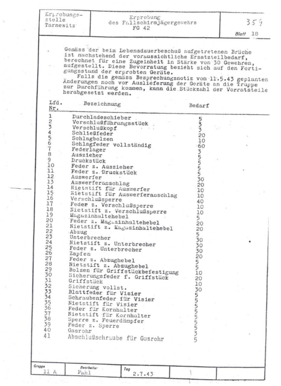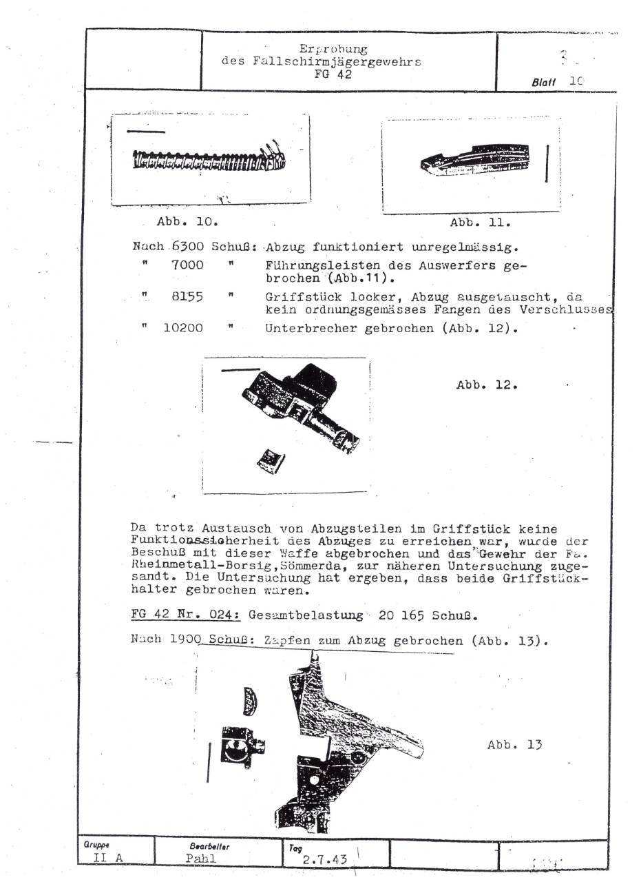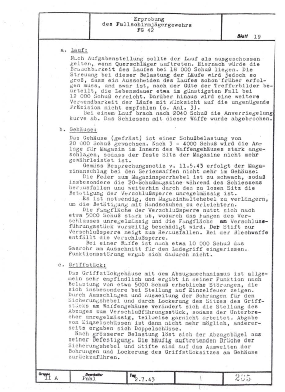 German FG42 testing report dated July 2, 1943. Includes results on both the ZFG42 and Voigtländer's prismatic FG42 sight.